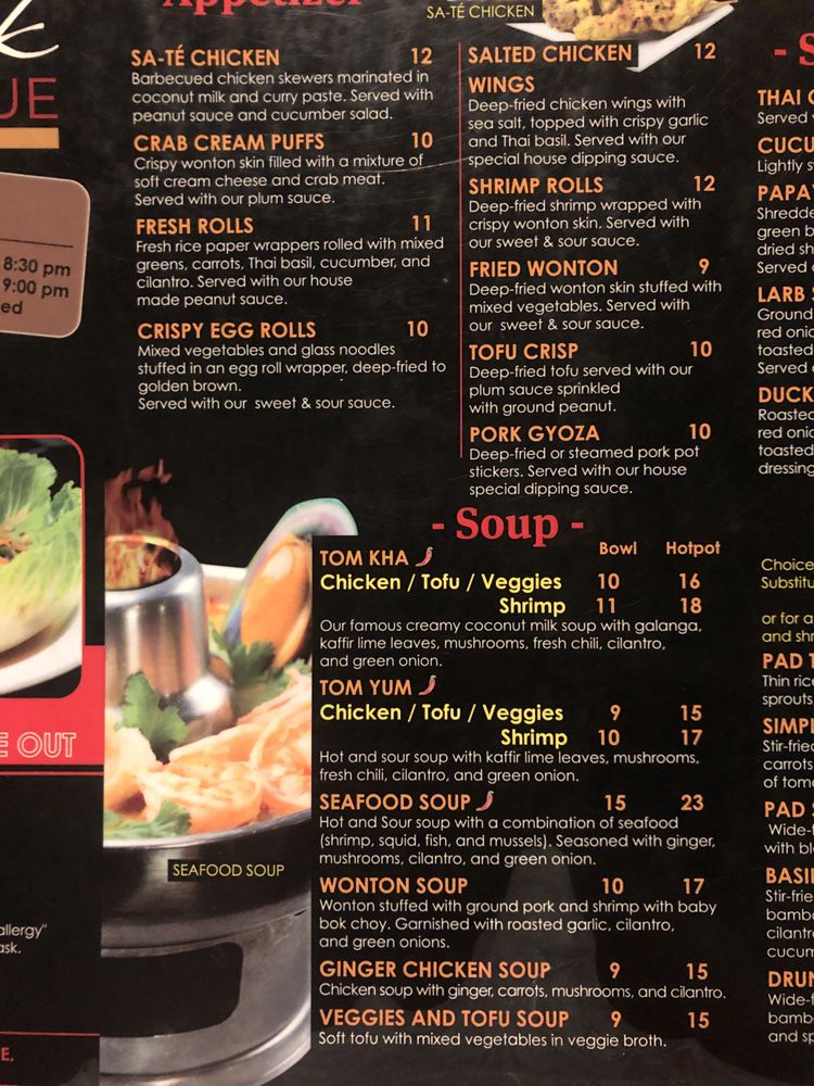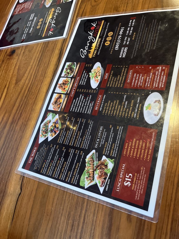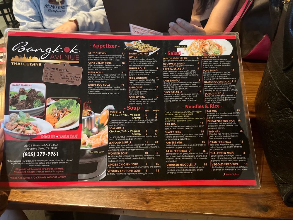Bangkok Avenue is a Thai seafood restaurant located in Thousand Oaks, CA. Offering a range of options from appetizers like Bangkok Dumplings and Crab Cream Puffs to soups like Ginger Chicken Soup and Seafood Soup, the menu showcases authentic Thai flavors. Customers rave about the Fresh Rolls and Simply Fried Rice, highlighting the delicious taste and generous portions. The cozy ambiance, attentive service, and flavorful dishes like Pineapple Spareribs and Pad See Yew make Bangkok Avenue a must-visit spot for Thai cuisine enthusiasts. With excellent food quality and friendly staff, this restaurant leaves a lasting impression on its patrons. Don't miss the opportunity to try their specialties and immerse yourself in the tastes of Thailand.